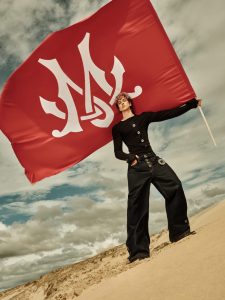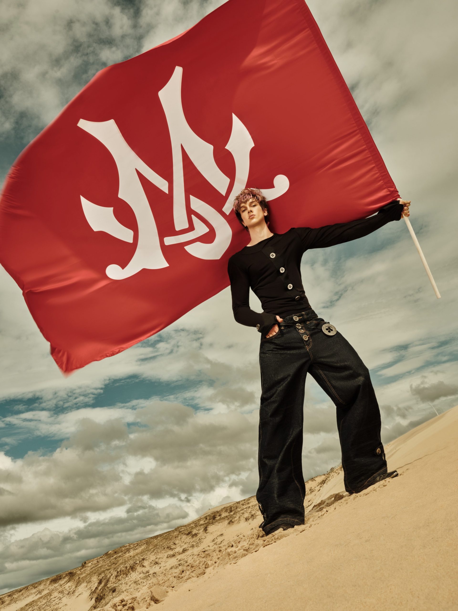 The model wears a size 2 and is 183 cm tall, weighing 67 kg.