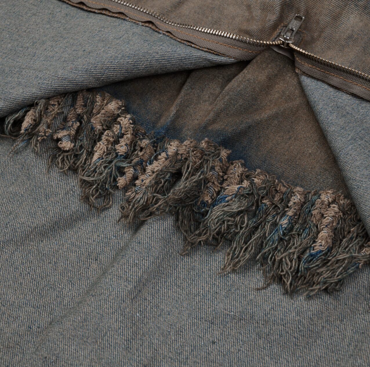 Cotton denim. Low waist. Layer zipper