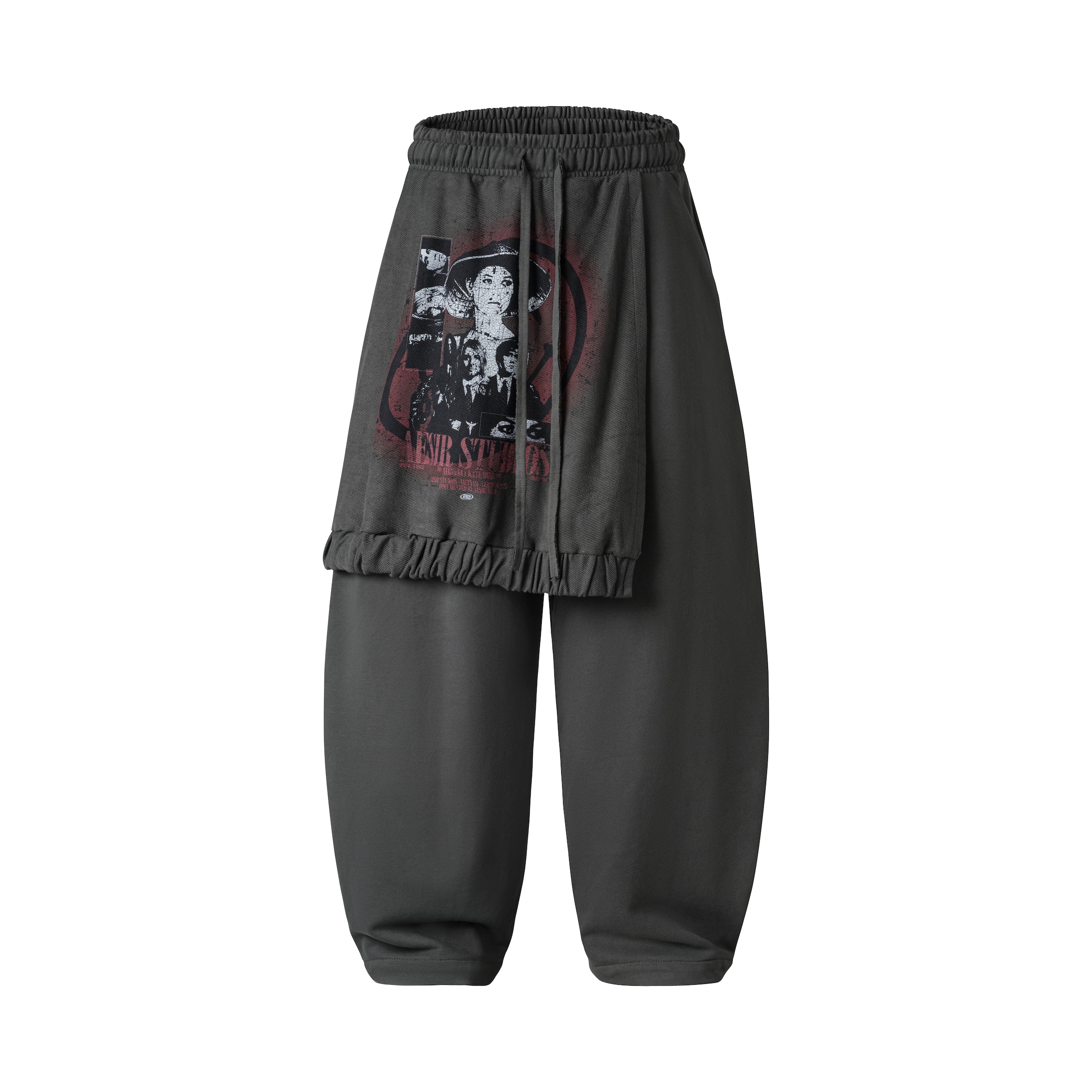 Design: Asymmetrical draped hem and bold heat-printed graphic details for a standout look