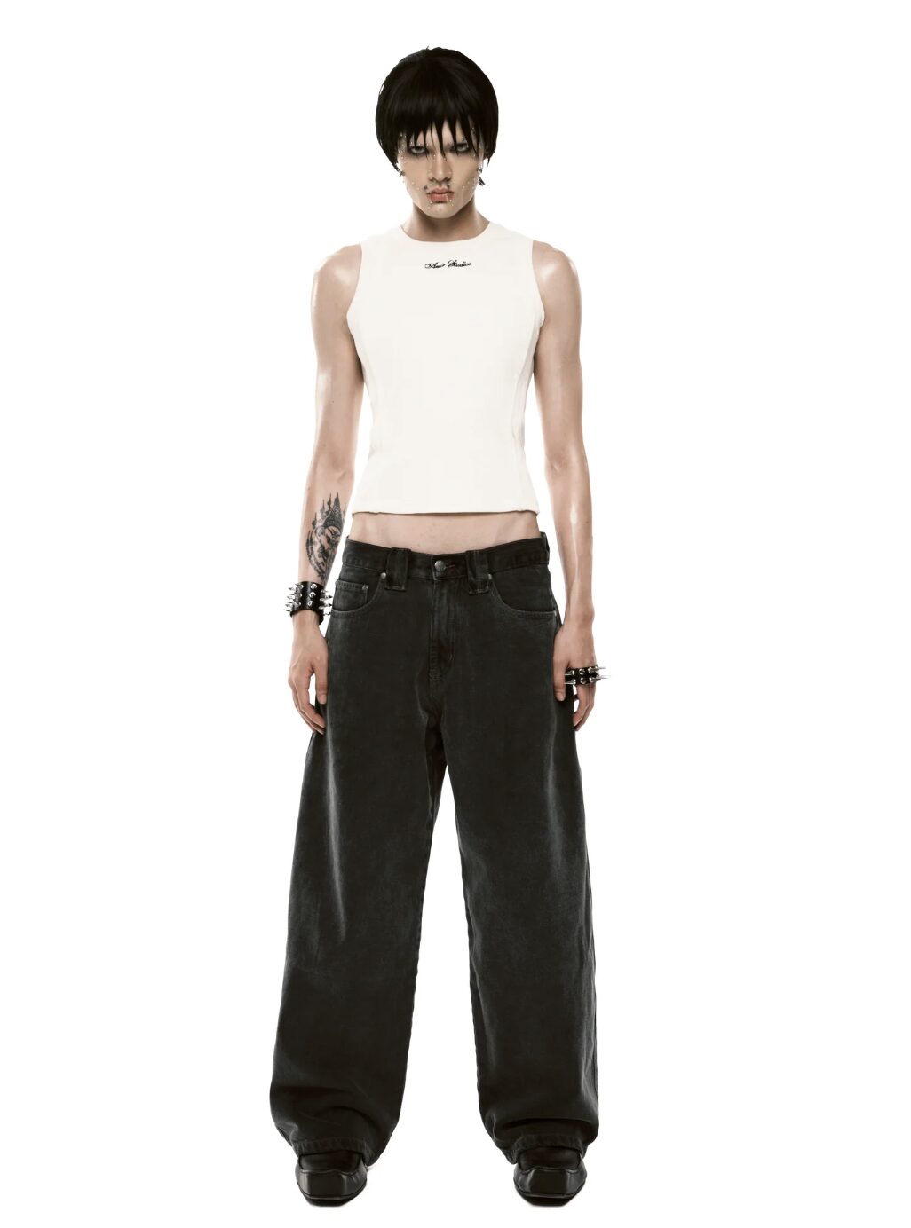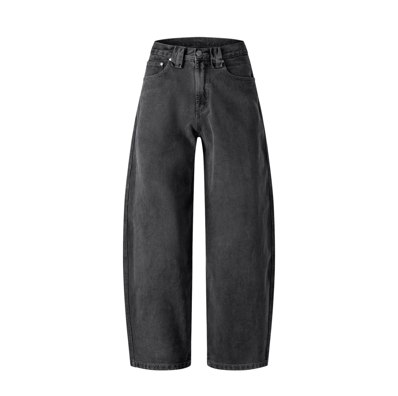 Balloon fit. Material: denim. Mid-rise waist. Effect: Stainless steel hook and zipper