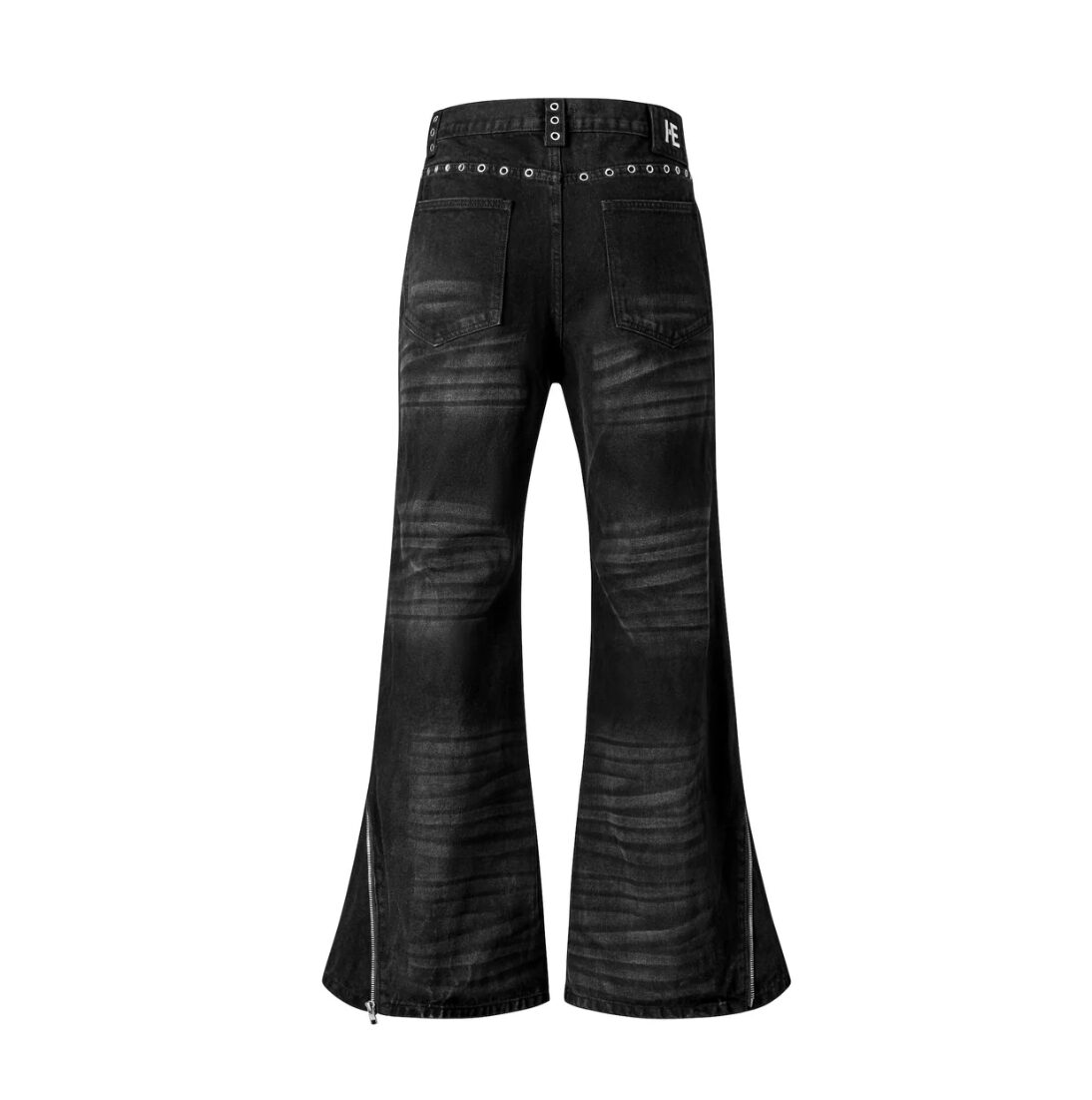 Fit: Flared. Material: cotton denim. Mid-rise waist. Effect: Zipper detail on the legs. Shoe-covering length. Buttons and metal studs with AE logo