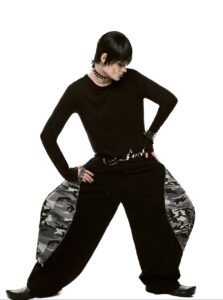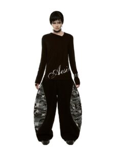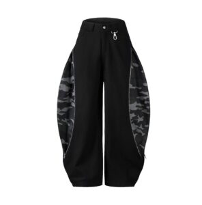 Mid waist. Ballon form. Zip camo detail. Kaki camo