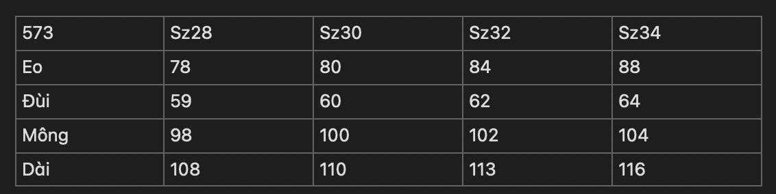 | Size | 28, 30, 32, 34 |