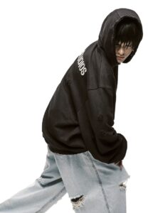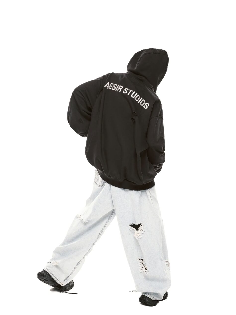 Oversized fit. Material: Fleece fabric. Details: Delicate distressing. Technique: Special embroidery technique