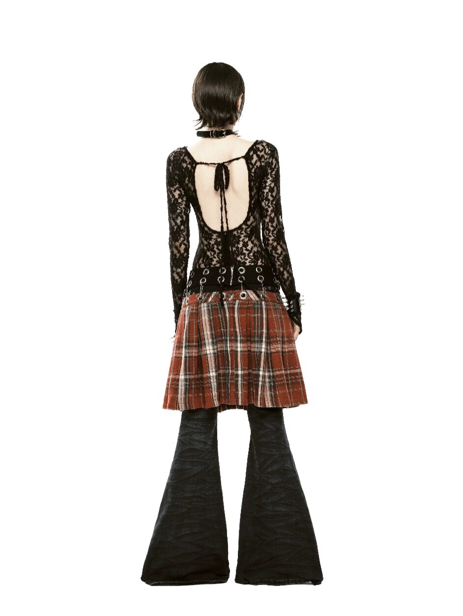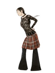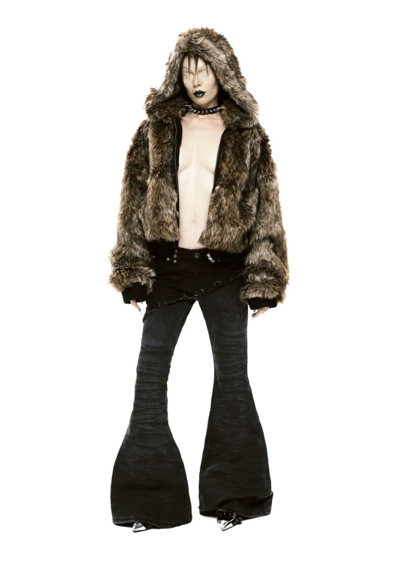 Fit: Flared. Material: Denim. Mid-rise waist. Effect: Meticulously distressed diagonal details. Cat’s whisker wash effect