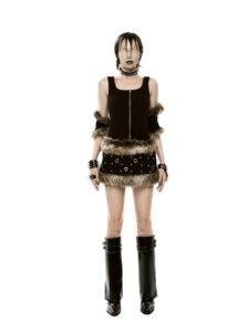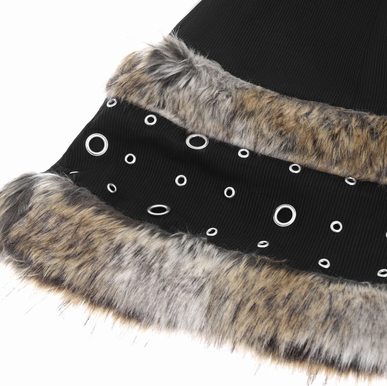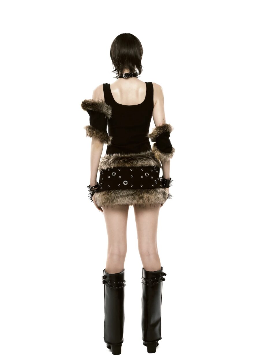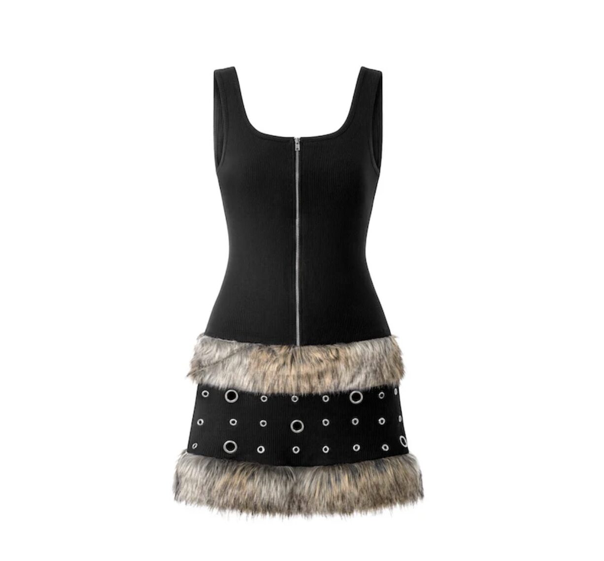 Fit: Body-hugging. Material: Ribbed stretch fabric with khaki fur accents. Effect: Distinctive fur detailing. Rust-resistant stainless steel rings and hooks