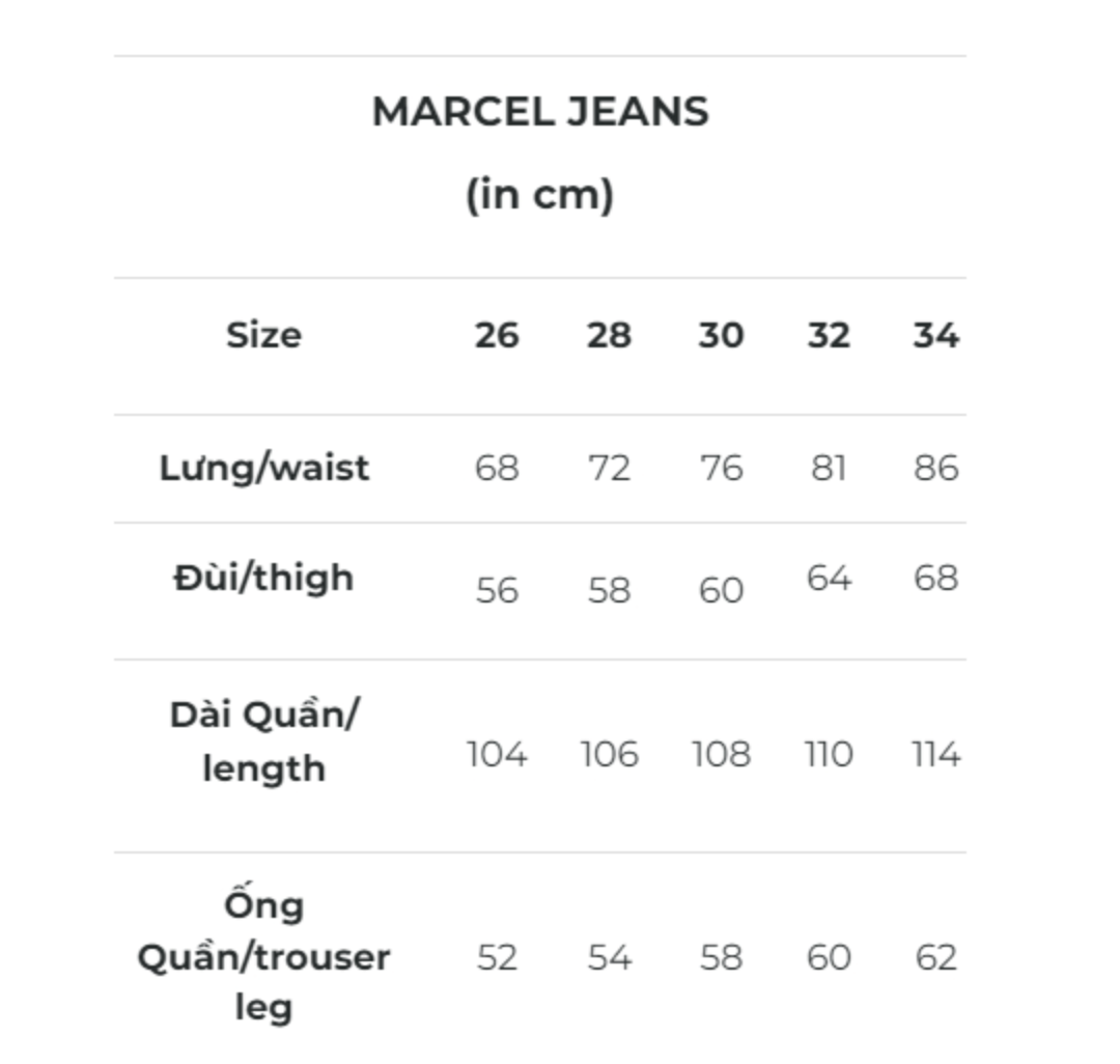 | Size | 26, 28, 30, 32, 34 |