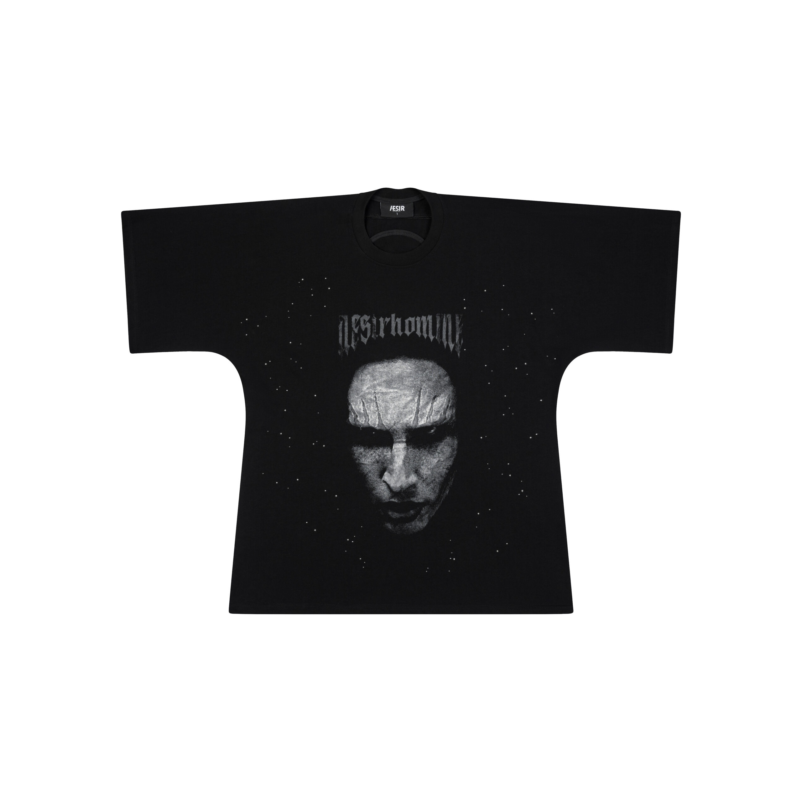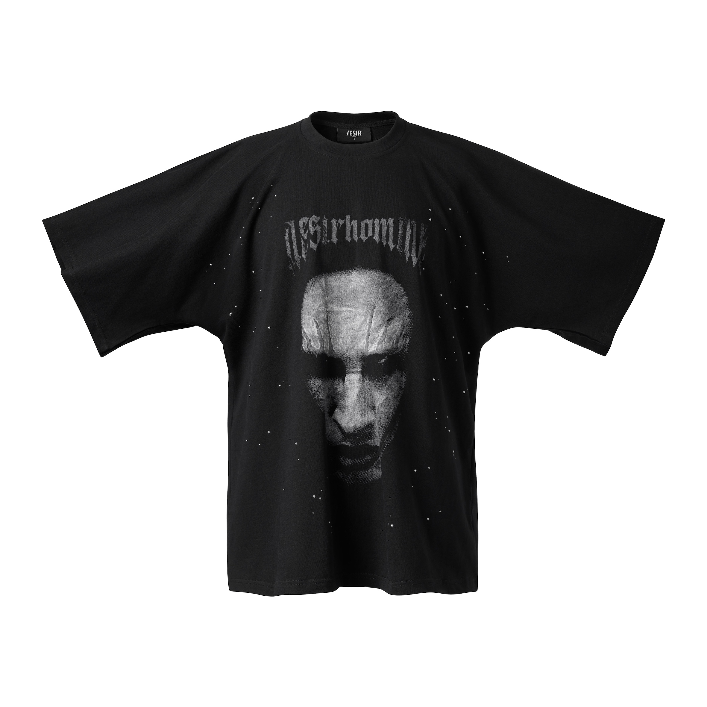 Material: Lightly stretchy cotton – breathable with just enough structure to hold its shape. Silhouette: Oversized batwing fit with dropped shoulders and wide, seamless sleeves extending from the body. Premium heat-transfer print technique. Scattered rhinestone embellishments across the front in a starburst pattern. Subtle faux collar at the back neckline creates a refined layered effect. Color: Black. Size: 1 (S–M), 2 (L–XL)