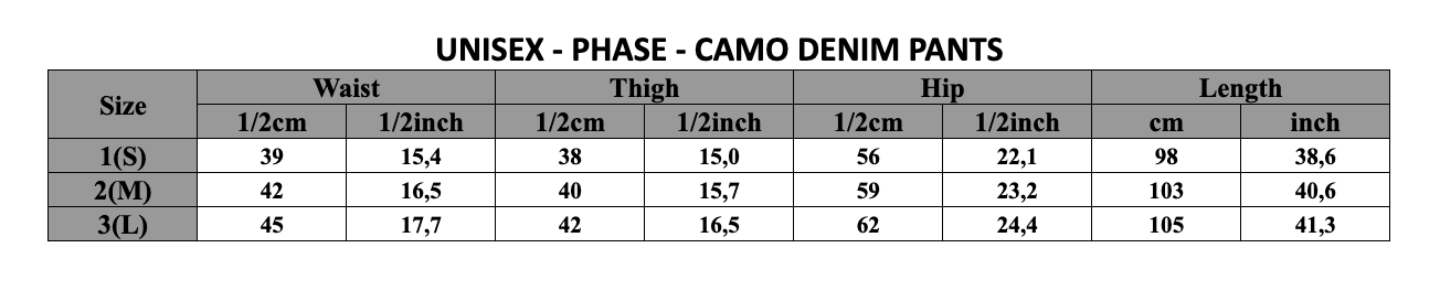 UNISEX – PHASE – CAMO DENIM PANTS