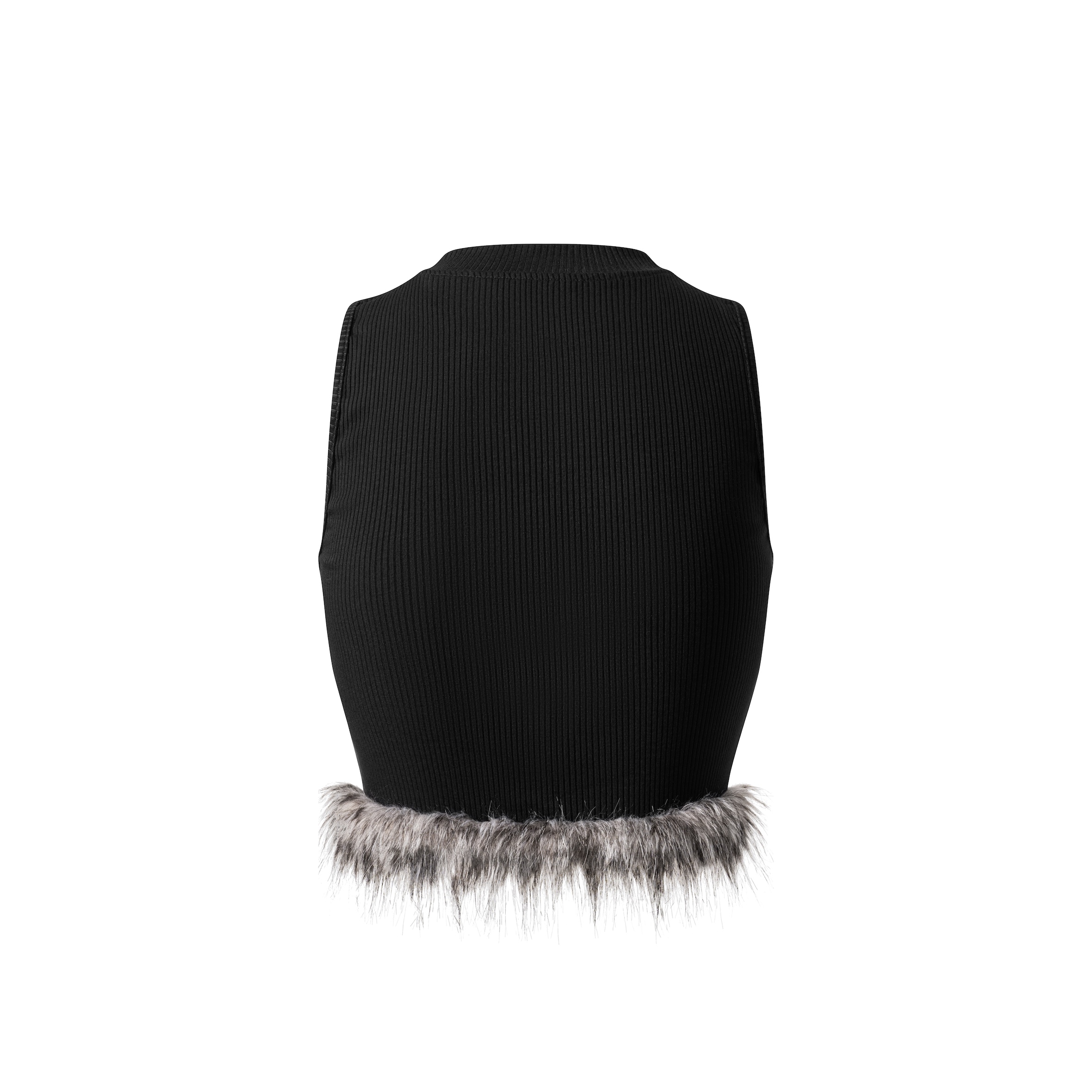 Cropped slim-fit tank top with smoky grey faux fur trim.